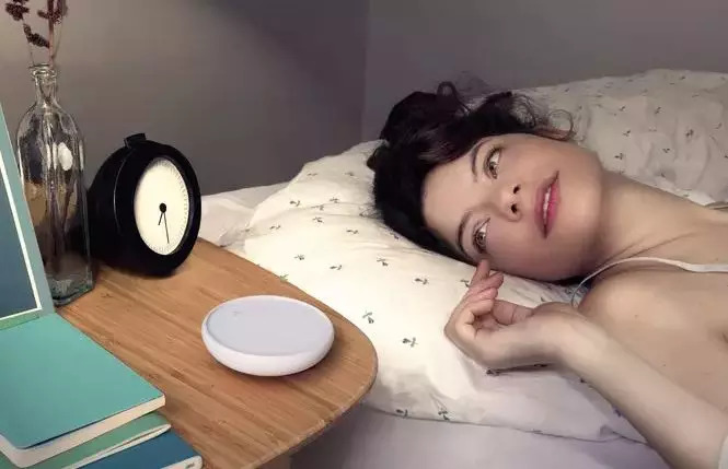 巴黎一位失眠症患者设计出了一款带有节拍系统的睡眠灯,晚上睡眠时盯着它投射在天花板上的光线就能睡着。