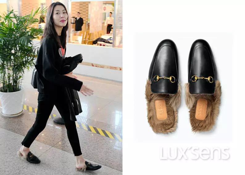 Gucci 家的爆款穆勒拖鞋她当然不会错过,这双绝对是Gucci 家性价比最高的单品!什么样的服装都能搭配,穿上简直不想脱!