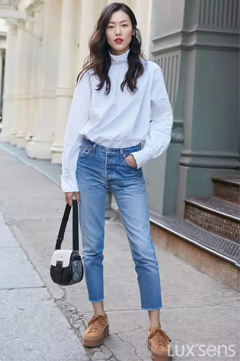 连日常穿衣也都是以简约为主,简简单单的白色上衣牛仔裤平底鞋是她自己觉得最舒服的装扮。