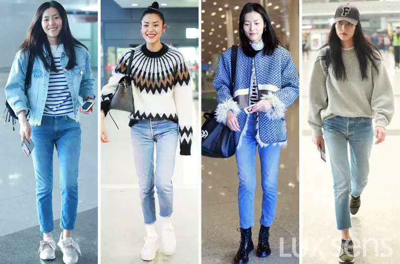 于是,可以发现,她的机场街拍往往都是牛仔裤搭配各种基础款,相比许多在机场打扮中各种用力过度的明星来说,大表姐绝对是一股清流~