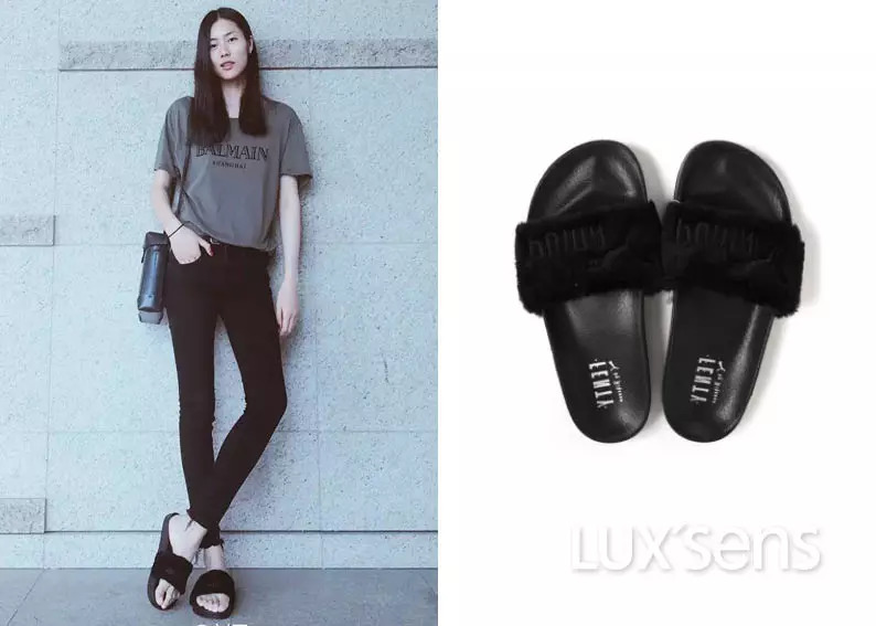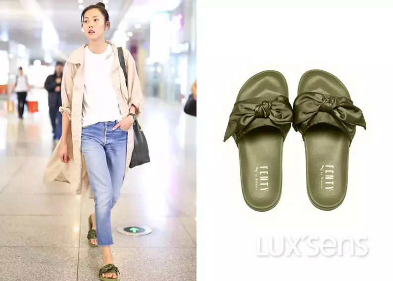 Fenty x Puma 系列的两个爆款她都有入手,橄榄绿的丝绸款上身清凉感加倍。