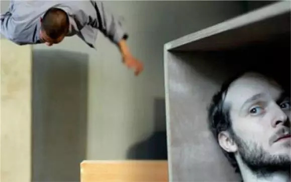 平常排练的时候练功没问题,但带着个木箱子就不容易了。开始就会有木箱子砸下来或者从木箱子上掉下来。