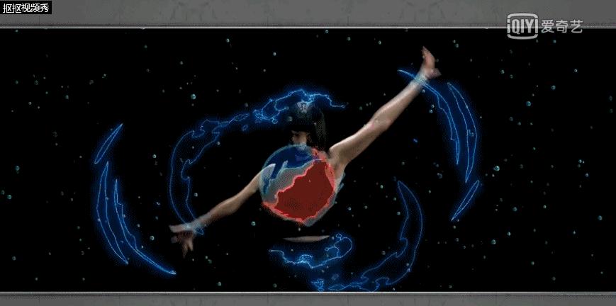 类似抖音特有的换装转换镜头,round 2在呈现谢文珂酷炫舞步的全息投影边缘会有标志性的蓝红虚影;