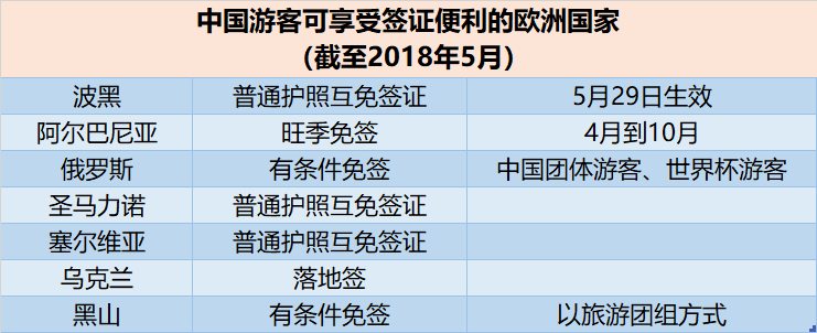 去欧洲旅游,只要申请到申根签证,便可进入欧洲26个国家,这给游客带来很大便利。欧洲也有部分国家对中国公民实施签证便利政策,例如波黑将从5月29日开始对中国公民实施免签,俄罗斯在世界杯期间也将对购买了球赛门票的游客免签。