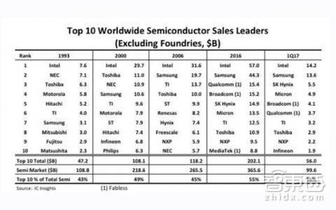 (2017年第一季度全球半导体厂商营收前十名)