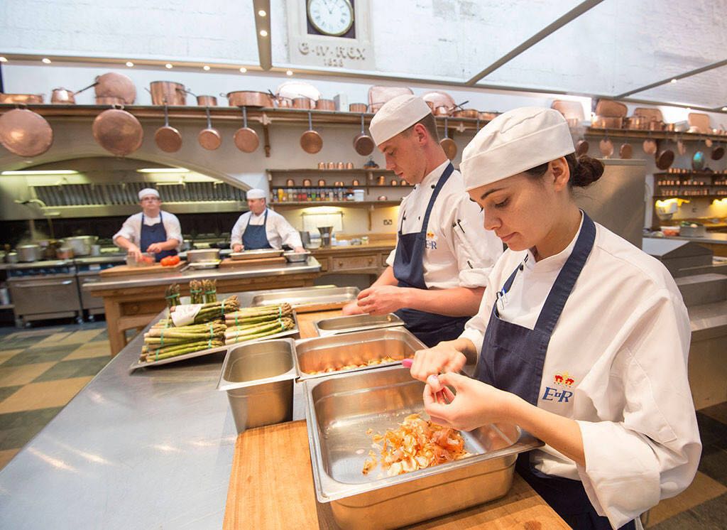 婚宴由皇家厨师Mark Flanagan 带领温莎城堡的厨房团队共30人掌勺。这个被人们称为“女王厨房”的团队起源于14世纪君主爱德华三世统治时期,曾为的30多位英国君主服务过,是英国最古老的厨房之一。