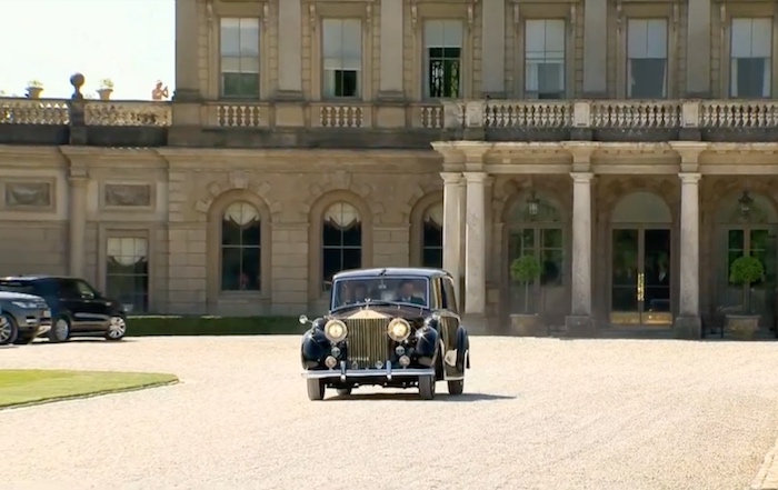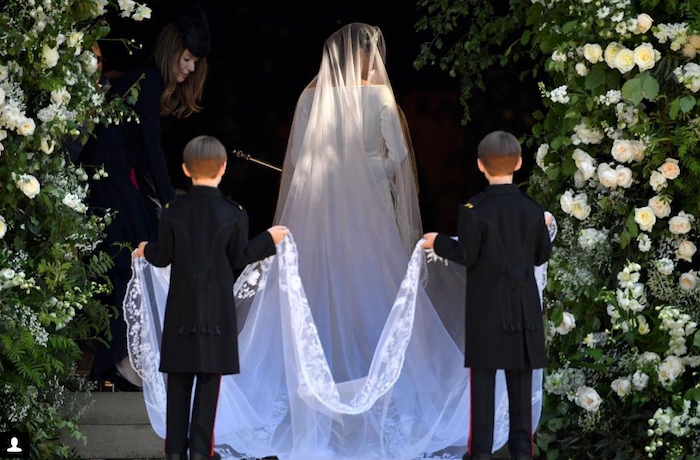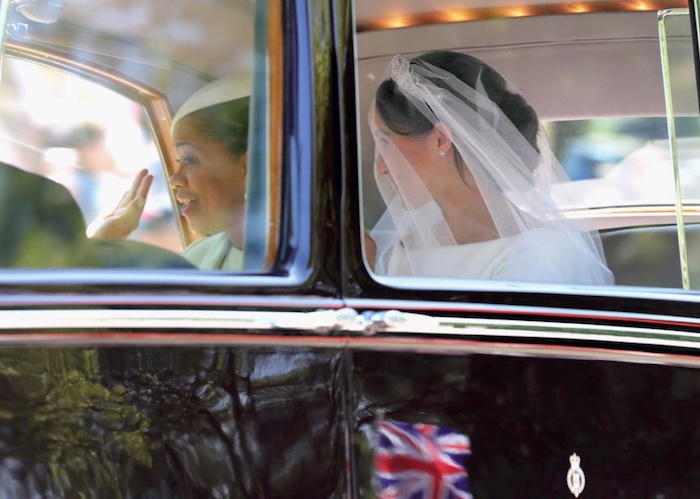 一切当梅根坐着复古小轿车与母亲一起离开下榻酒店,前往温莎城堡时有了答案。透过车窗看到的梅根头发低低挽起,白色头纱下隐约可见她的笑容,以及被一字领衬托的锁骨。梅根果然还是选择了白纱。