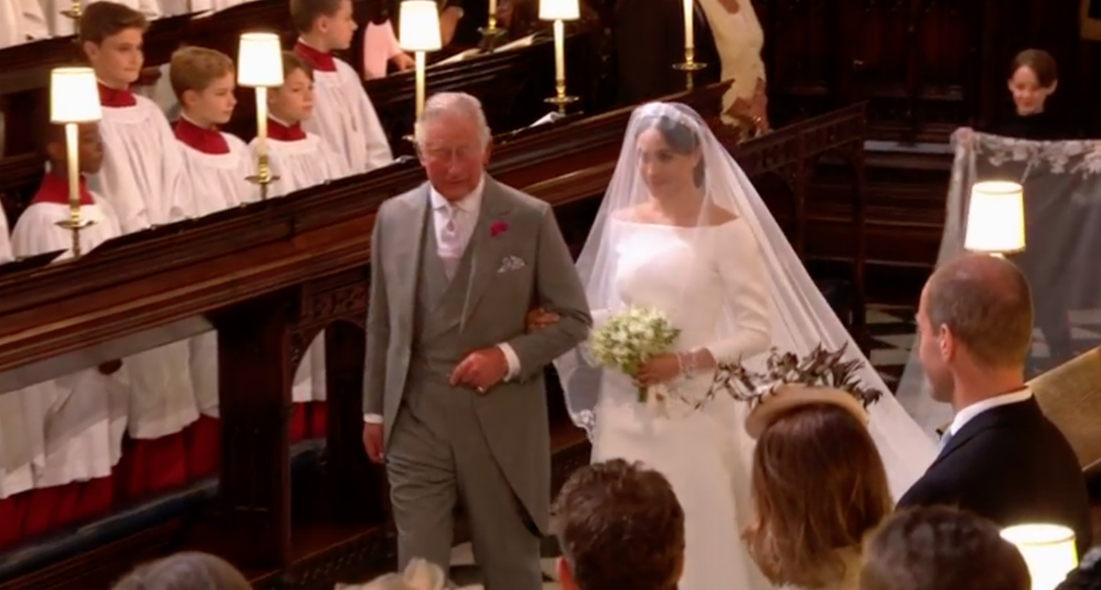 梅根的父亲在婚礼前已被确认,因病不能出席。婚礼前一天,英国肯辛顿宫便公布将由哈里王子的父亲、英国王储查尔斯牵着梅根走上红毯。