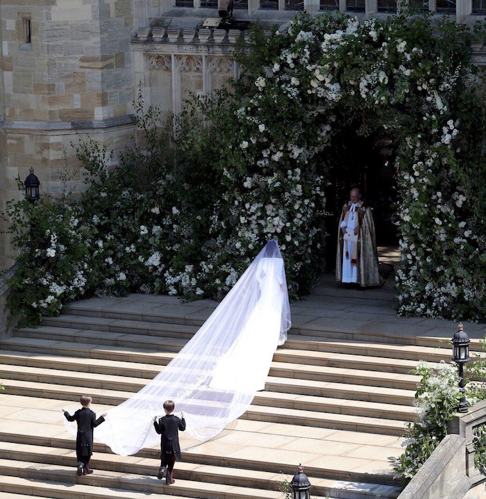 梅根身着拖地白色中长袖长礼服,剪裁十分简约,一字肩的设计让这件婚纱时尚了起来。不过,所有的爆料都是一场空,梅根最终穿着来自Givenchy的礼服,在全球观众面前亮了相。据英国版《Vogue》消息,这件婚纱由Givenchy艺术总监Clare Waight Keller设计,强调腰部剪裁,及整体休闲感。梅根选择Keller或许有这位设计师出生在英国伯明翰的缘故。更重要的是,梅根表示对其精湛的剪裁技艺以及设计中带着的轻松感觉印象深刻。