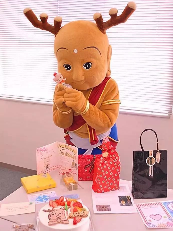 随着魔性跑偏派的吉祥物人才辈出,原来被视为异端的奈良县迁都君,也逐渐打开了市场。当初,因为一改此前吉祥物短手短腿,动物感明显的主流模式,“真人感”强烈的迁都君受尽冷眼,甚至有人直言它丑、恶心。奈良佛教界也抗议:“让佛头上长鹿角是在侮辱佛祖大人!”但现在也已经翻身做主人啦。