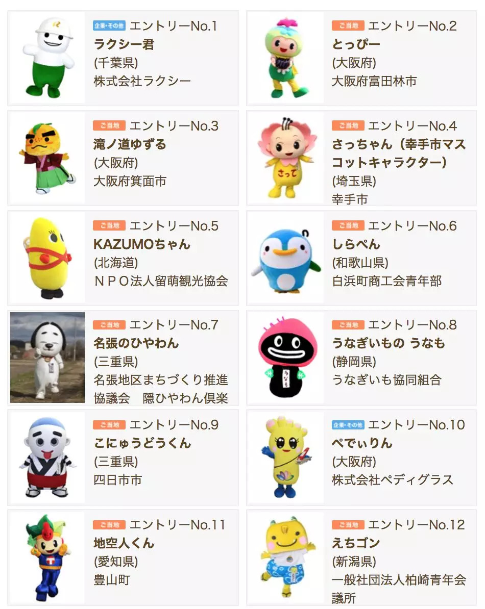这项赛事,无论是地区政府还是民间公司都可以参加。去年,有1157位吉祥物参与竞争,其中当地吉祥物681个,企业吉祥物476个,这可比《偶像练习生》激烈多了。