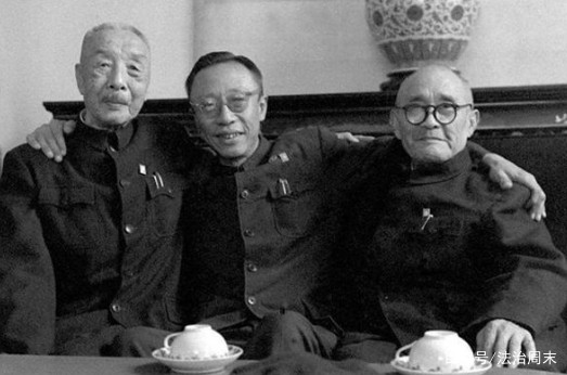 1961年,溥仪与当年把他从紫禁城里赶出来的冯玉祥将军部下鹿锺麟(左)、打响武昌起义第一枪的战士熊秉坤(右)合影。溥仪幽默地对熊秉坤说:“是你打响了第一枪,让我成了一个普通人。”资料图