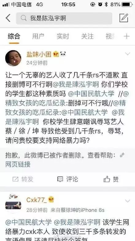 但并非所有人都能接受这种偶像和粉丝间的关系,在蔡徐坤的微博发出后不久,就有网友评价称居然有人将染发当成给别人的福利,简直是“神经病”。这条微博在经过大V转发后迅速扩散开来,并得到很多网友的响应,一些愤怒的粉丝开始攻击并人肉该网友的相关信息,甚至在微博上@其学校要求对他进行处罚。