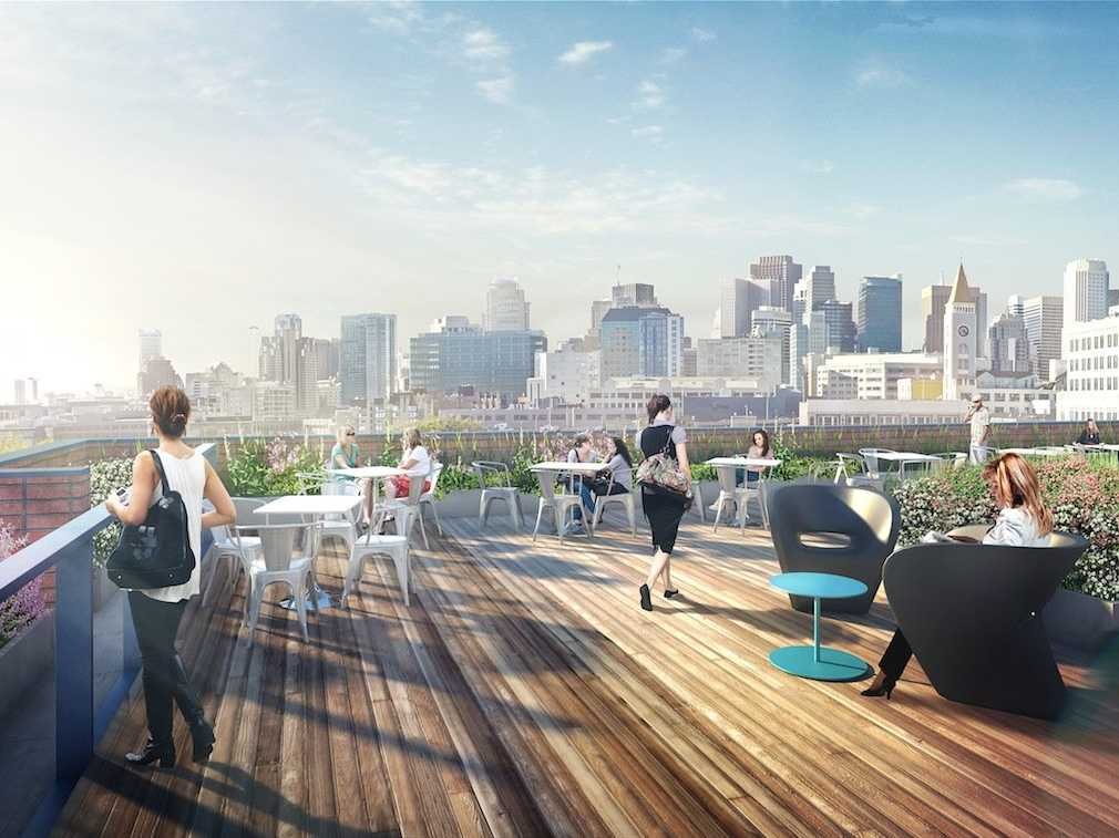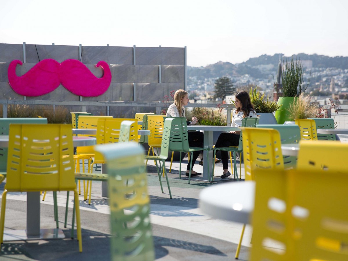 【4】Dropbox(云储存公司)有85,000平方英尺的空间,700名员工还可以从巨大的落地窗和开放平台上俯瞰旧金山湾和AT&T公园。公司到处是滑板车,员工常常滑着滑板车来回开会。你能在公司的食堂大快朵颐之后,还能去公司里的健身房健身,或者去Band Room谈谈吉他唱唱歌。