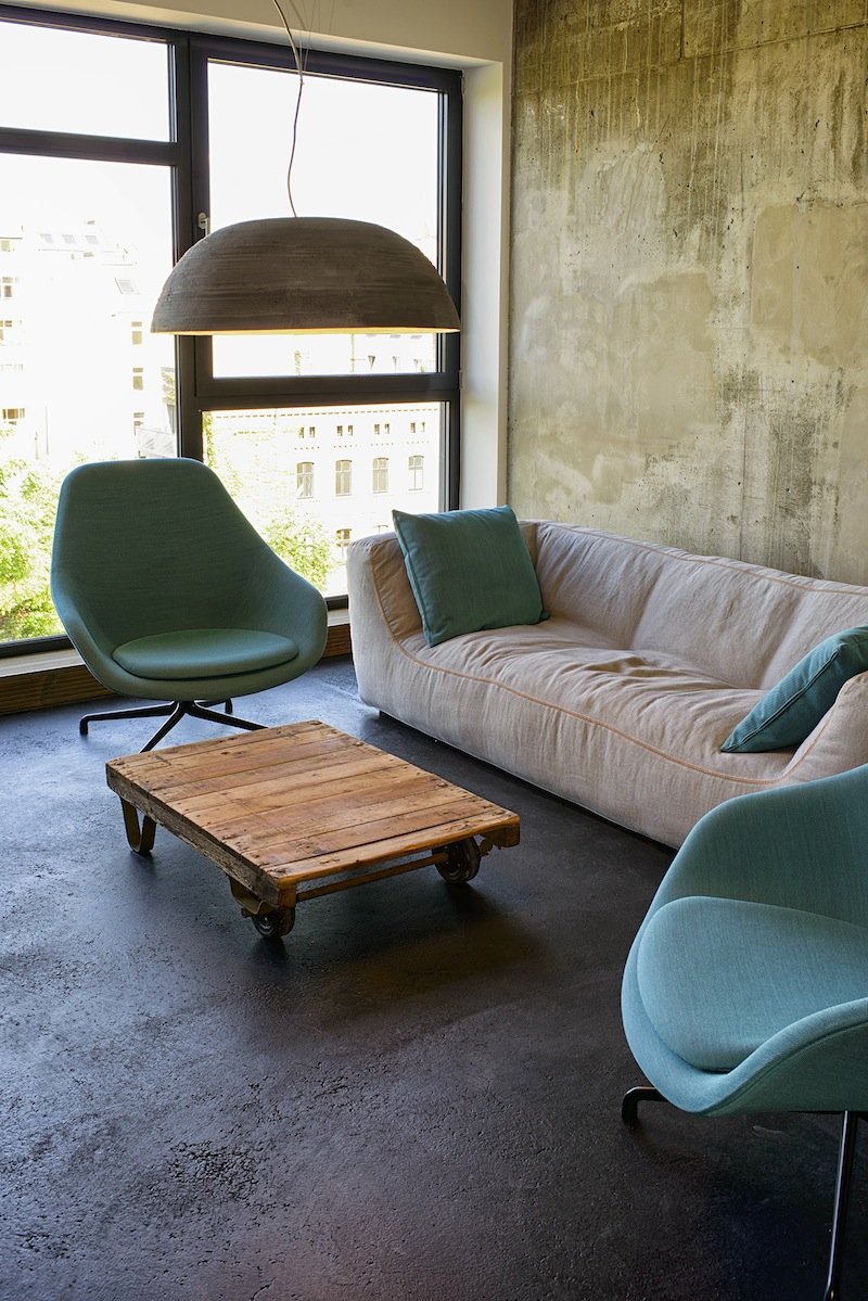 【12】SoundCloud(在线音乐分享平台)的新办公室可以俯瞰柏林墙纪念馆,宽敞又现代,混凝土的地板给人一种城市和工业化之感。公司里有图书馆、瑜伽房、花园、烧木头的复古壁炉,还有无处不在的音乐设备。建筑材料同样是环保的,例如靠垫就是用可持续的麻纤维和椰子壳制作而成。