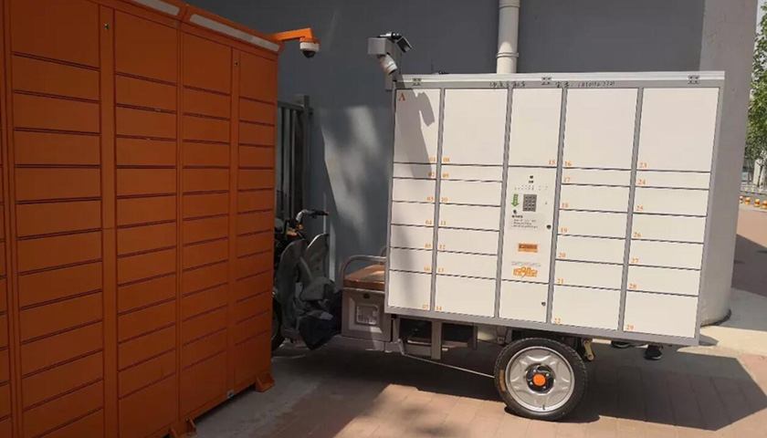 近日,北京的一些小区内出现一款快递末端“神器”:可移动智能快件箱。该快件箱由电动三轮车牵引,箱体有64个格口,控制柜有数字按键以输入取件码,还装有摄像头等监控设备。
