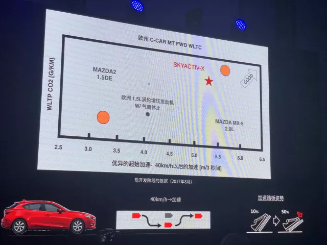 人见光夫表示这款测试车(搭载“SKYACTIV-X”汽油发动机)其实针对中国的低标号汽油做了标定测试,完全没有问题。只是根据相关部门的要求以高标号燃油做认证,所以请中国消费者大可放心。