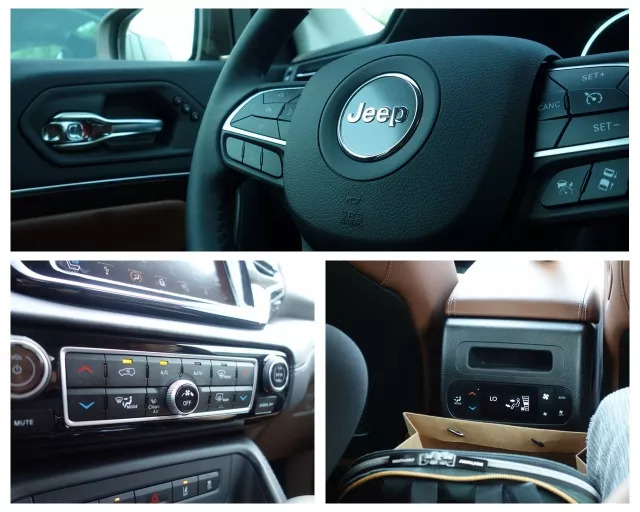 同时整个内饰的造型很标准,用的也是Jeep的家族式设计语言。相比汉兰达这种在各种细节强调“大”的内饰,大指挥官在各方面都显得更精致些,各类功能操作起来让人感觉触感很好。座椅的包裹性比汉兰达那种沙发式座椅好不少,特别在试驾时更能体现这一点。大指挥官在细节上很讲究,比方说笔者发现大指挥官的车门居然用了足足五种材料拼接而成(软包/木纹/皮革/镀铬/塑料),触感自不用说,高级感是营造得很足的。