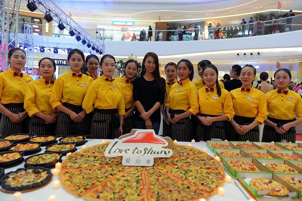 兰州万达广场内超大比萨亮相,吸引市民目光。除了这个“大家伙”外,海鲜比萨、暗黑魔法烤肉比萨也让人眼花缭乱,原来比萨可以玩这么多花样。为庆祝进驻兰州万达两周年,必胜客放出大招,百余款美味比萨供千人共享。