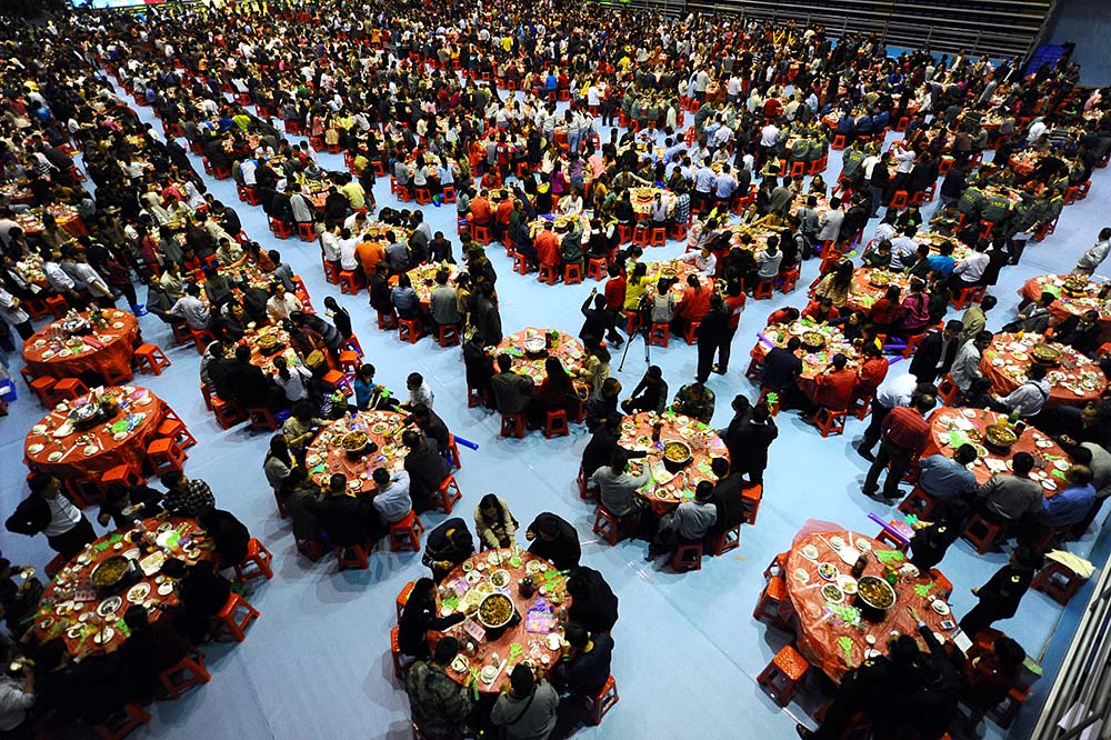 新年的团圆饭、正月十五的汤圆、端午节的粽子......对于美食,人们总是心生向往。当上千人聚在一起同吃一顿饭时,场面十分震撼。或为庆祝,或为纪念,吃货的快乐就是这么简单。