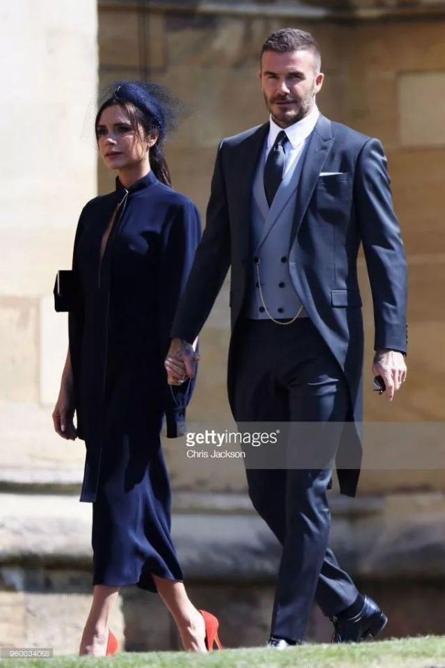 王室婚礼必请的贝克汉姆夫妇也来了,贝嫂的全套行头都来自自己的品牌Victoria Beckham,而贝克汉姆的晨礼服来自Dior Homme。