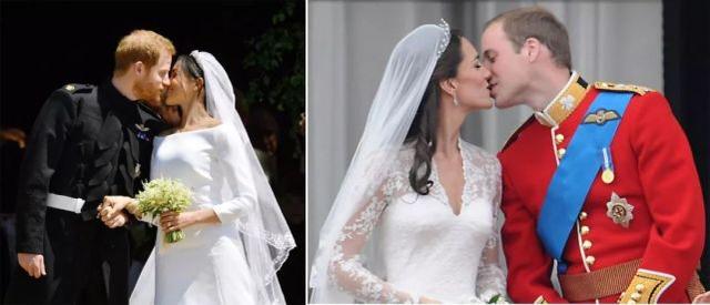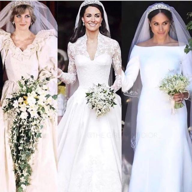 和婆婆戴安娜王妃、凯特王妃结婚时穿的婚纱相比,梅根这次穿的纪梵希算是最简洁的。