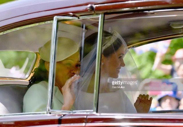 梅根的母亲从酒店和她一起坐车抵达温莎城堡之后就和伴娘交换位置。