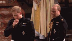今天也是哈里王子第一次看到梅根的婚纱,本来还紧张得一直摸鼻子的哈里王子看到新娘那一刻,笑得那叫一个幸福。
