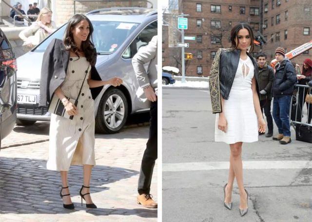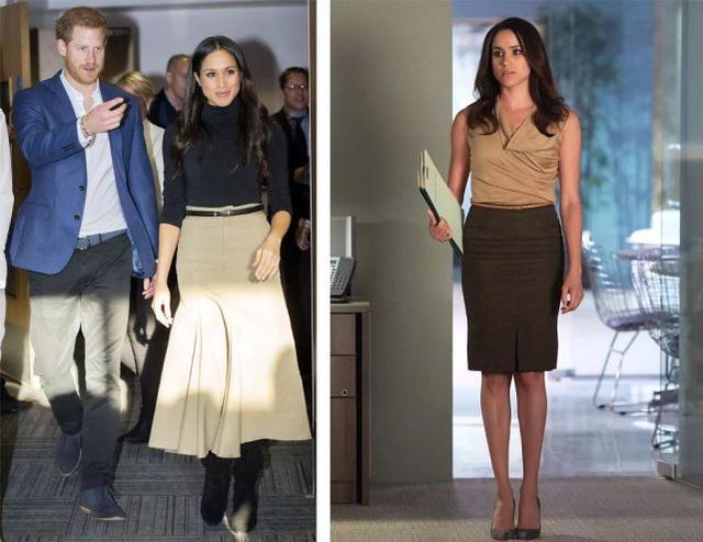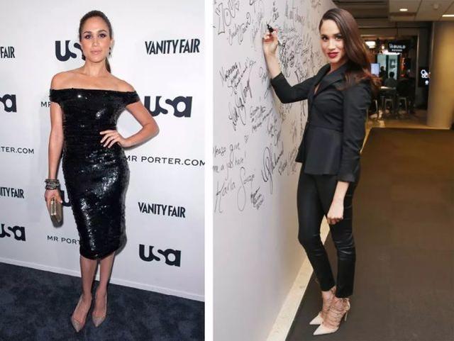最后,不知道姑娘们发现没有,梅根其实是典型的H型身材,手长脚长,也很纤细,但腰不算细,胯也比较宽,一旦碰上在腰臀那里非常紧身的衣服,就会暴露缺陷,这点在《金装律师》里其实就暴露了,左边她还加了条腰带,更明显。