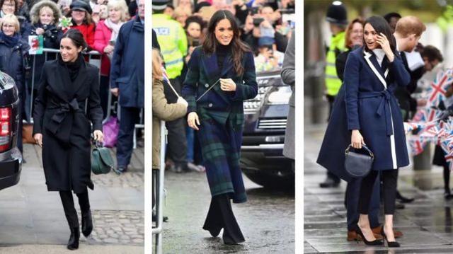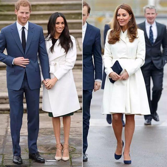和爱穿彩色大衣的凯特王妃不同,梅根更爱穿白色、米色这类素雅的大衣,长度还是王室老规矩,都过膝。小8觉得梅根特别适合白色,显得她肤色比较明亮,她自己可能也发现了,米色大衣里也会穿个白色毛衣作内搭。