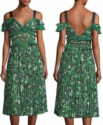 这条绿色的连衣裙来自盛产仙女裙的self portrait,售价510美金,现在还在预售,想买的姑娘可以去看看~