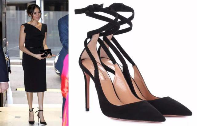 有时她也会在鞋子上玩些花样,比如用和裙子同色的绑带鞋来给整身的造型增加时髦度,而且依然很优雅。这双绑带鞋是Aquazzura的,售价750美金。