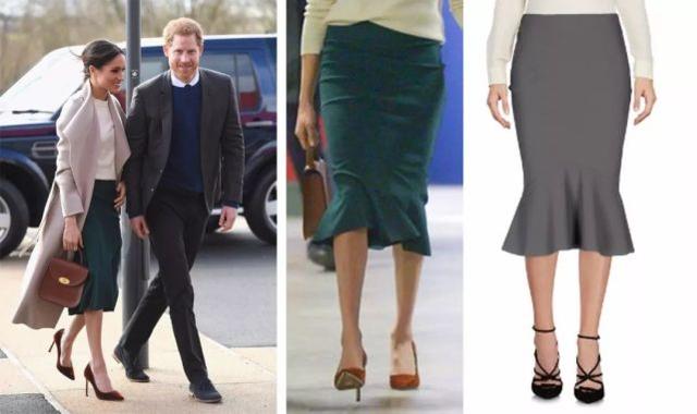 貌似梅根很喜欢墨绿色,这套的大衣里的半身裙也选了墨绿色,裙子来自加拿大品牌Greta Constantine,现在已经卖空了。