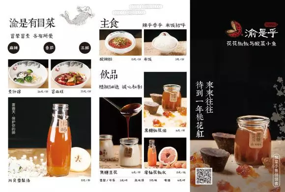堂食的用户重视装修和服务。渝是乎的店面都是120-150㎡之间的店面,却营造出了正餐门店的感觉。装修颇具时尚文艺范儿,店面、餐具随处可见设计得可爱的“花椒”形状logo,菜单上,菜品的介绍好玩又文艺,提供一种软性的文化氛围。