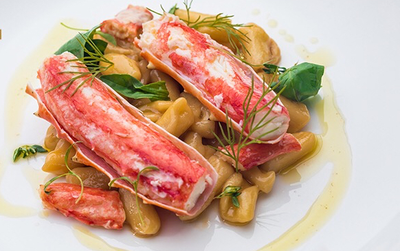 米其林二星餐厅 8 1/2 Otto e Mezzo Bombana 的主厨 Riccardo La Perna,以及帝王蟹猫耳意面等三种菜谱。