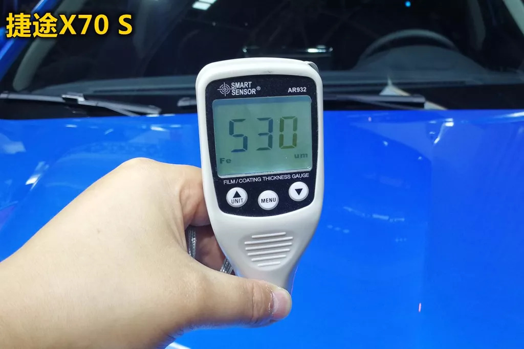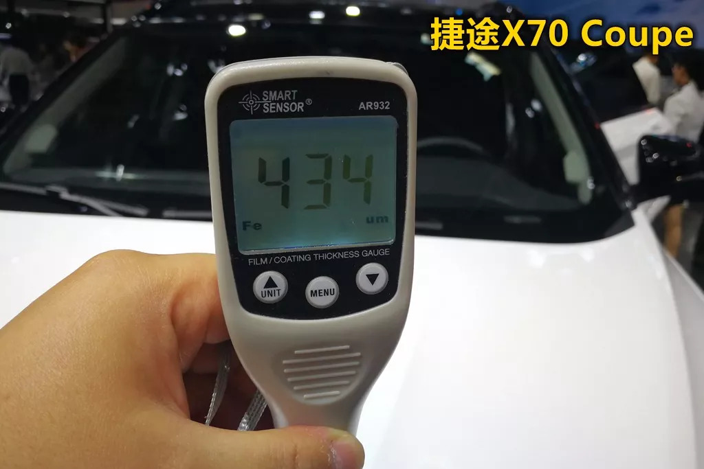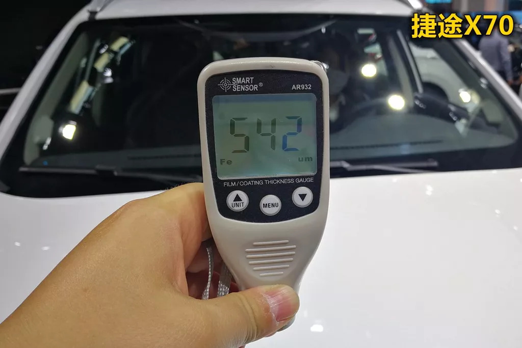 在38款车当中,捷途X70系列的3款车以及一汽骏派,总共4款展车的漆膜厚度超过了300微米(um)——这种厚度的漆膜出自涂装流水线的可能性极小。所以,我们将这4款车定义为“疑似定制展车”不计入排名。而这4款车,目前均未上市,所以如此也是可以理解的。