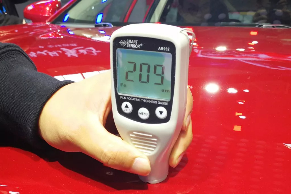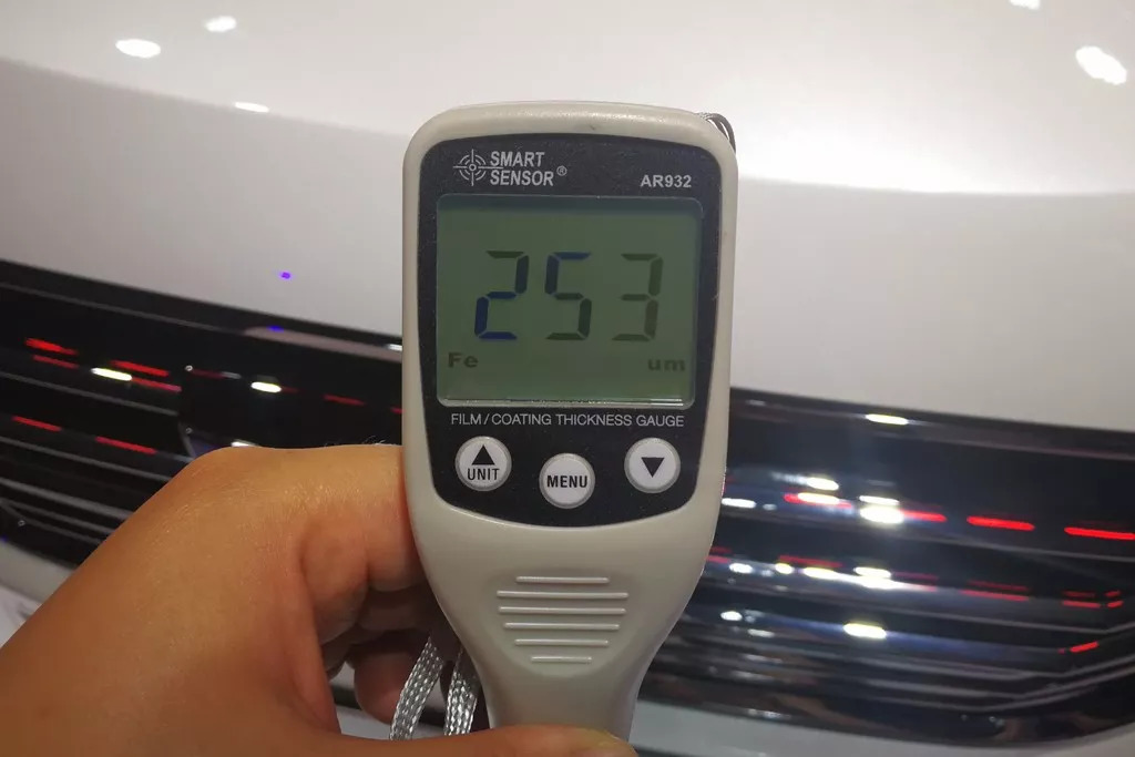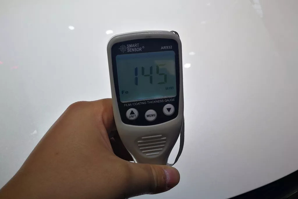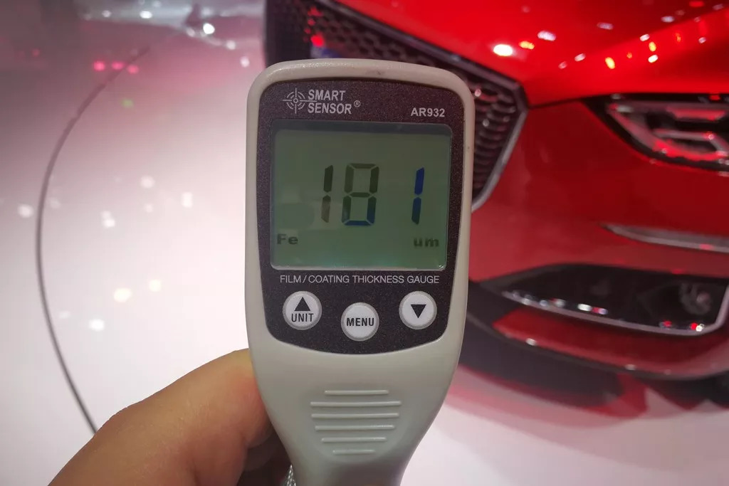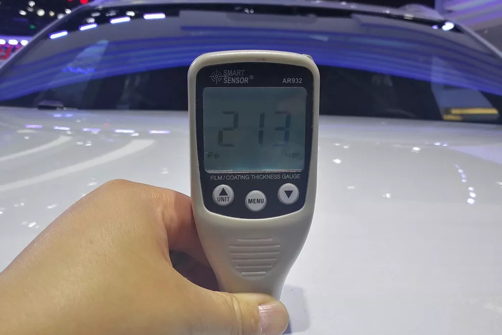 由于本次测量的仪器其工作原理有点类似于“核磁共振”,因此只能测量金属钣金(含铝合金钣金)的漆膜厚度,对于塑料、玻璃纤维以及碳纤维钣金无能为力,所以一些高端车的钣金漆膜厚度无法测量。否则,以北京车展的规模,展车远不止300多款。另,我们选取的漆膜测试部位位于车前“引擎盖”部位,相对而言,为了抵挡迎风面的砂石磨损,这个部位的漆膜可以说是全车最厚的。