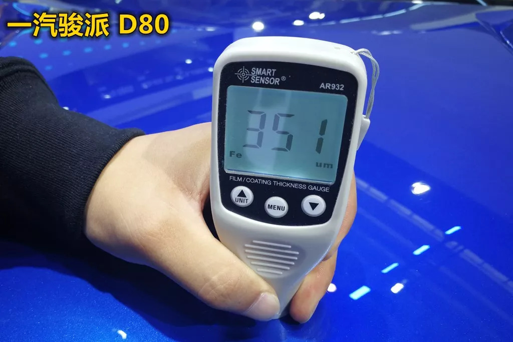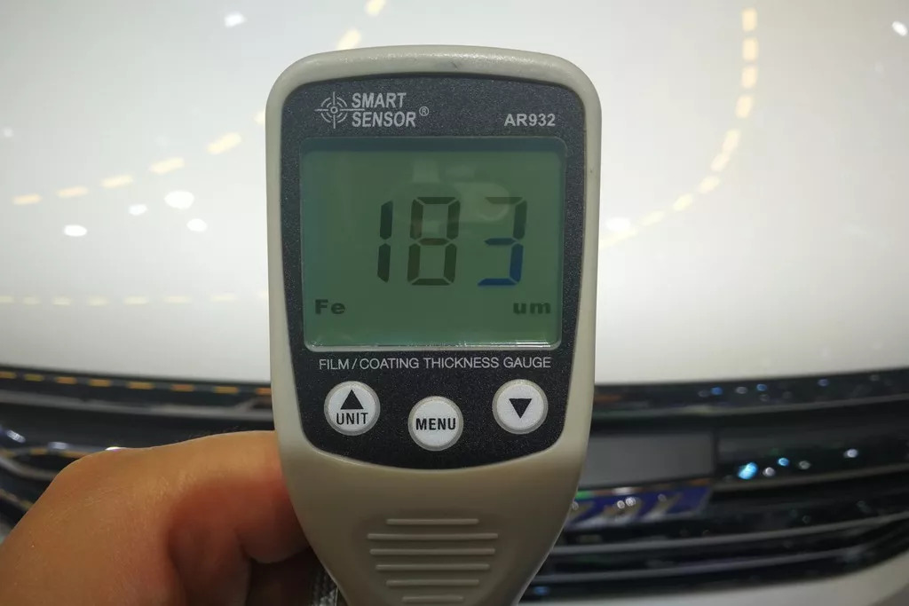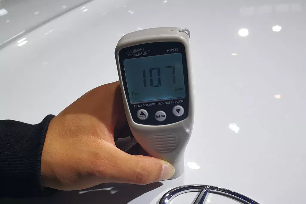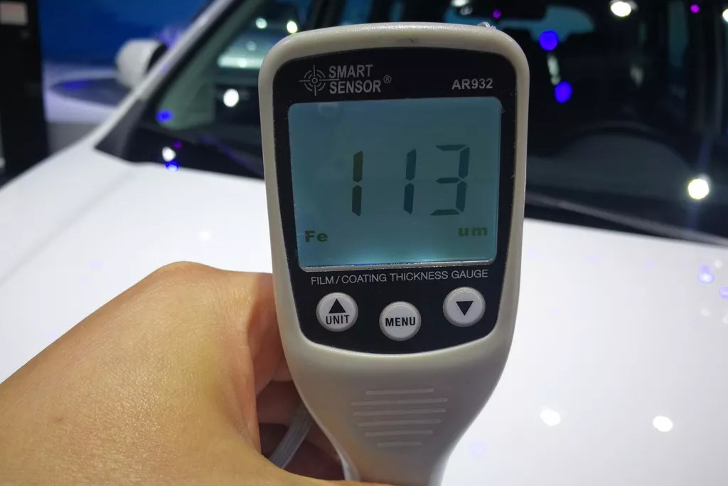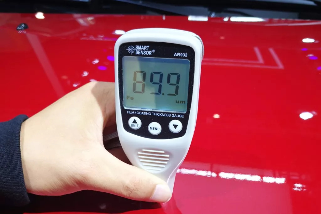 由于本次测量的仪器其工作原理有点类似于“核磁共振”,因此只能测量金属钣金(含铝合金钣金)的漆膜厚度,对于塑料、玻璃纤维以及碳纤维钣金无能为力,所以一些高端车的钣金漆膜厚度无法测量。否则,以北京车展的规模,展车远不止300多款。另,我们选取的漆膜测试部位位于车前“引擎盖”部位,相对而言,为了抵挡迎风面的砂石磨损,这个部位的漆膜可以说是全车最厚的。