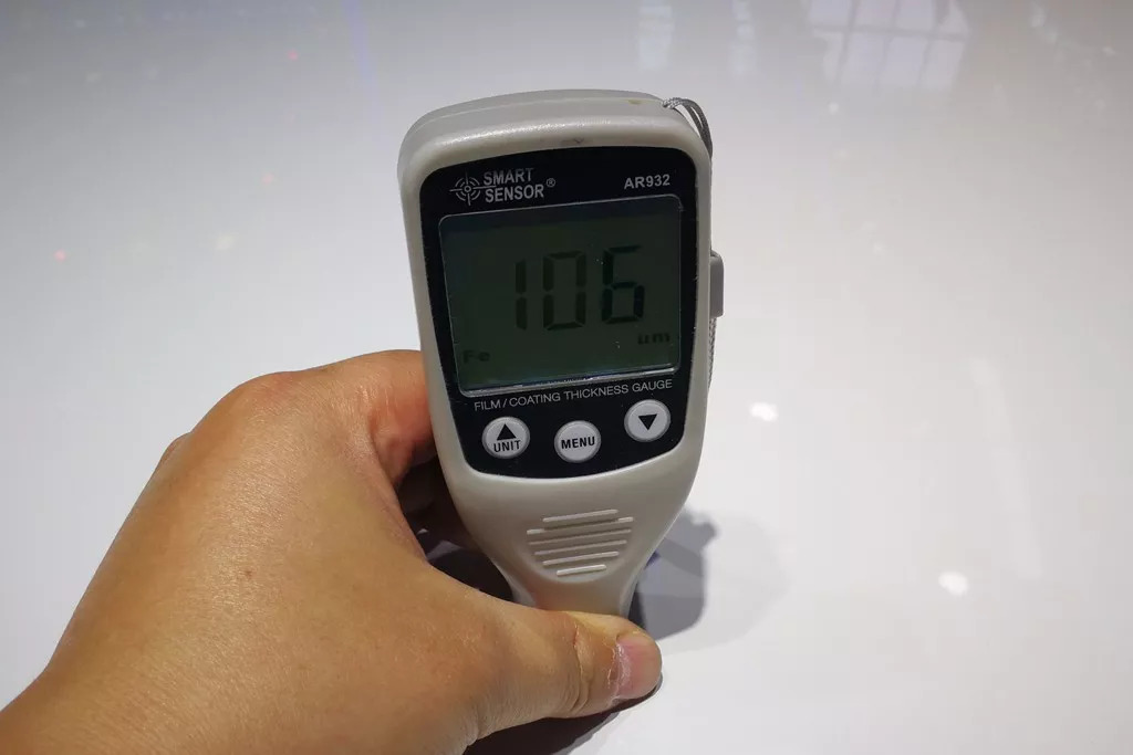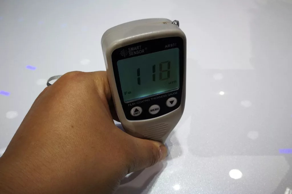 主流的车漆分为电泳层、中涂层、色漆层和清漆层总共4层,一般来说,电泳层厚度为20微米,中涂层厚度为30微米,色漆层厚度20微米,清漆层厚度30微米,换句话说,车漆厚度在100微米以上的基本都可以被视为合格。