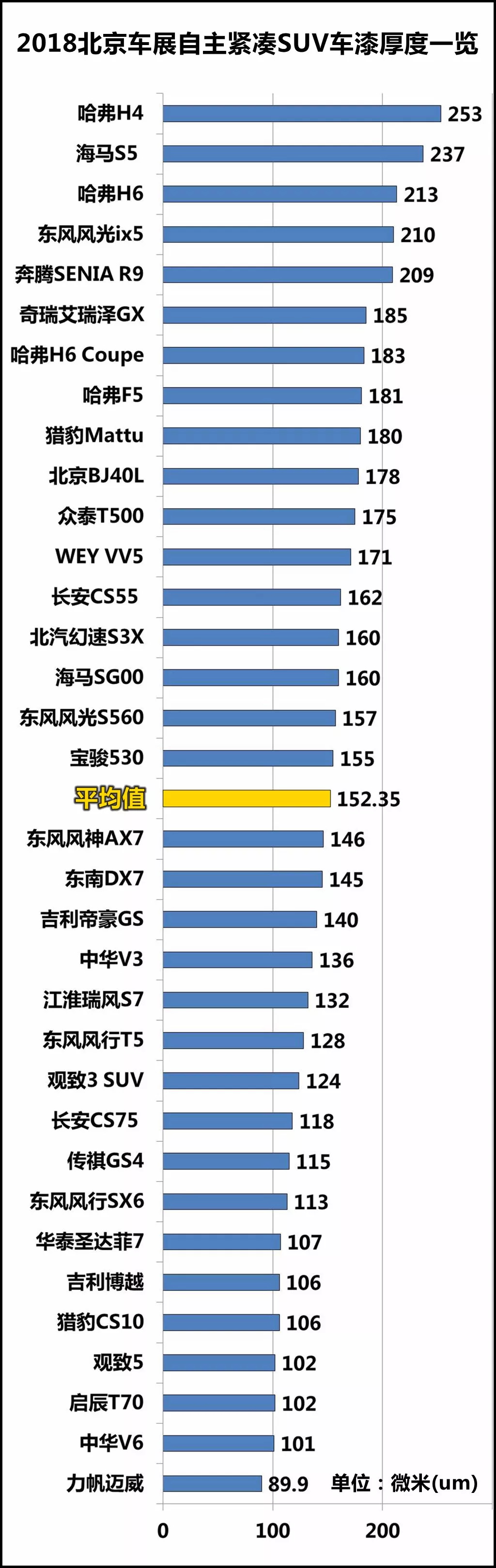 之前AutoLab已经发布了小型轿车、自主紧凑轿车、合资紧凑轿车、小型SUV、豪华/进口轿车、中大型及以上SUV、MPV、非豪华品牌中级及以上轿车、豪华/进口紧凑和中级SUV、合资/自主中级SUV,总共10组车漆厚度测试报告,今天发布的是2018北京车展上38款自主紧凑级SUV的车漆厚度测试报告。不得不说,这篇报告也是该系列报告的重头戏之一。