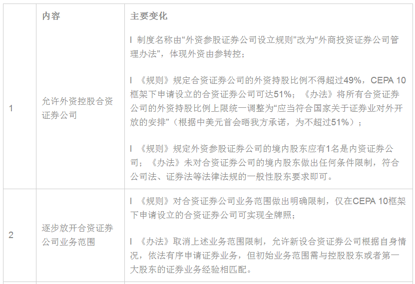 基于上述承诺及我国扩大服务业对外开放的一系列政策,中国证券监督管理委员会(以下简称“中国证监会”)于2018年3月9日发布《外商投资证券公司管理办法(征求意见稿)》,就该文件向社会公开征求意见并快速落地,于4月28日正式颁布《外商投资证券公司管理办法》(以下简称“《办法》”)。