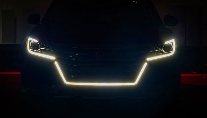 前脸延续荣威家族一体化设计理念,以“光”作为重要的品牌识别符号,进气格栅外轮廓使用LED灯带进行了半包围勾勒,以展翼光弧刻画家族特征,赋予较高的车型辨识度;内部采用封闭设计,镀铬饰条精致且富于变化;引擎盖线条采用当下流行的中国传统建筑中轴线设计凸显大气豪华。