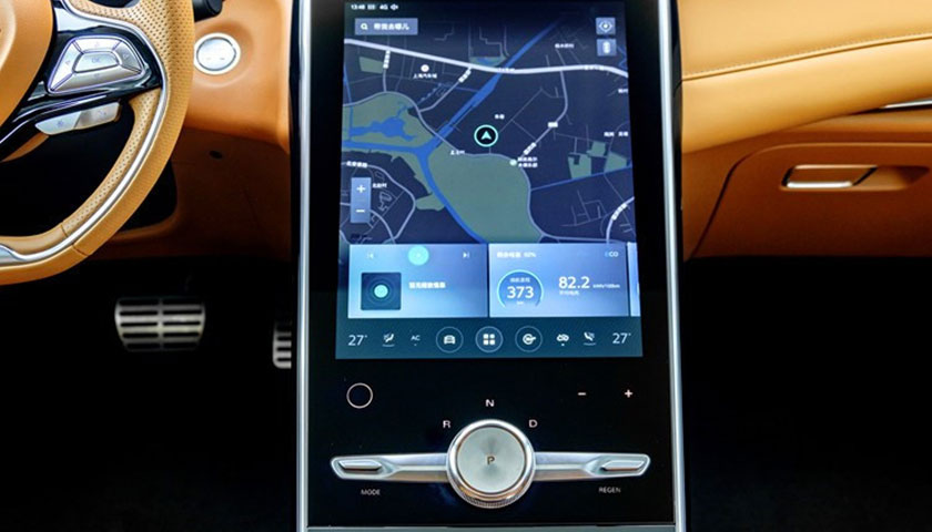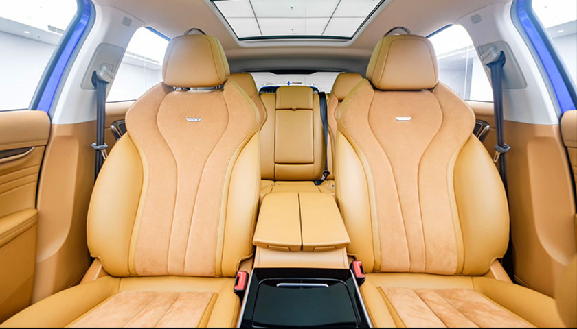 在深度分析市场需求后,上汽集团技术中心邵景峰团队认为车辆外在造型应该与内在体验所匹配,MARVEL X作为代表荣威品牌全新高度的高端车型,内饰用料和设计风格应当符合“电动智能超跑SUV”的产品定位。鎏金之翼配色的内饰观感较为豪华,大面积的皮质包裹与木纹装饰条也凸显出较高的档次感。隐藏式空调出风口采用家族化横向舒展设计主题,很好地融入整体设计当中,以此强调和突显集成式智能中控,使整个内饰设计主次分明更加简洁。