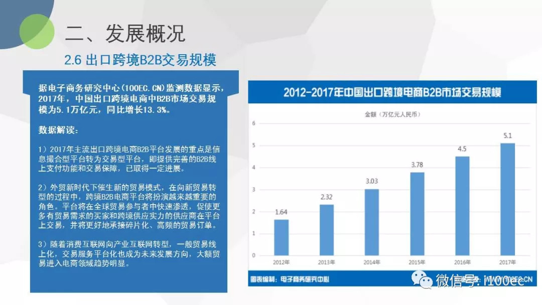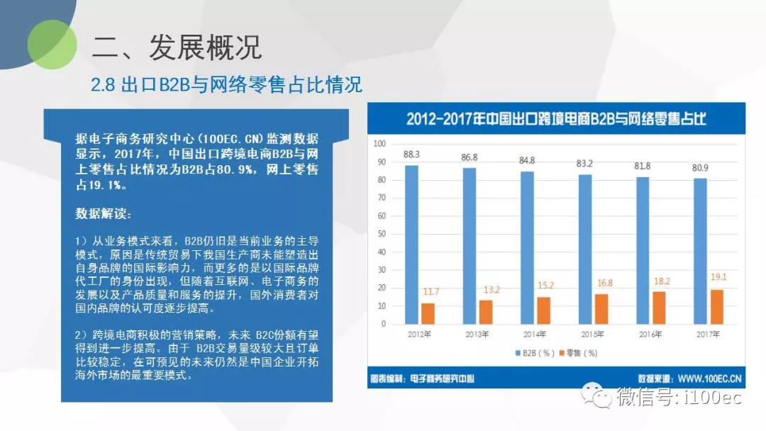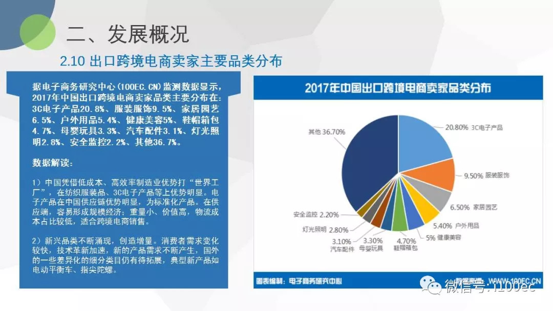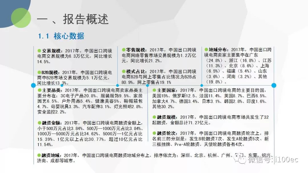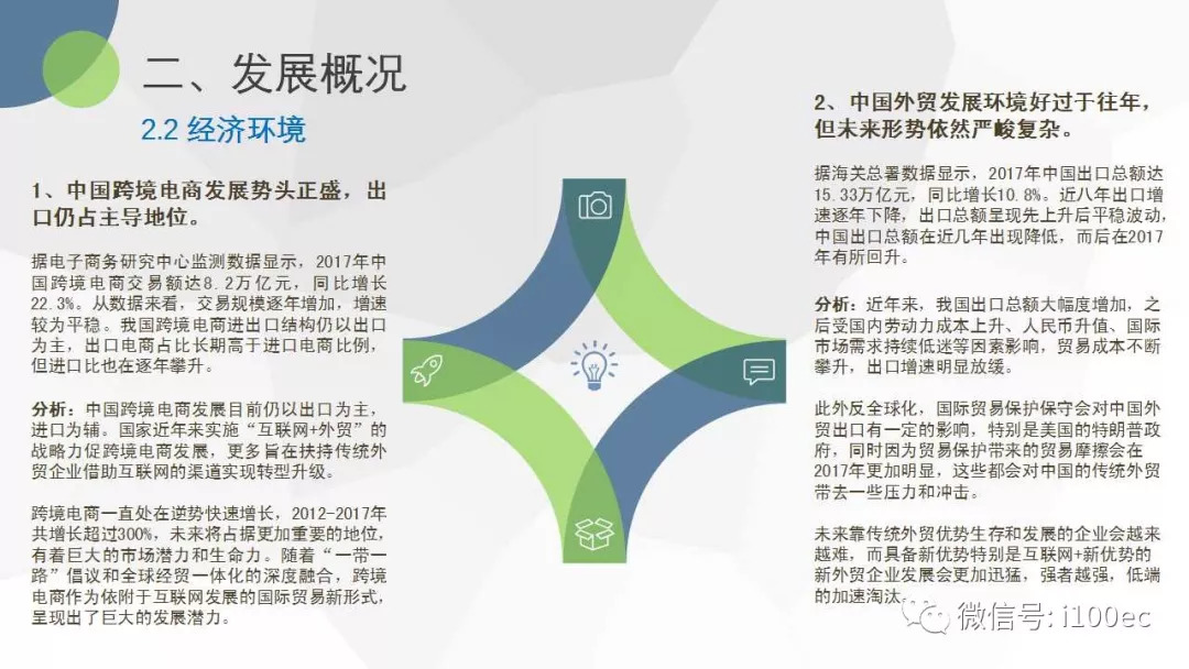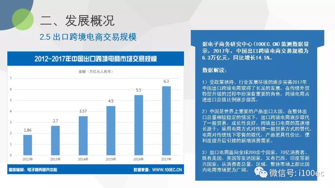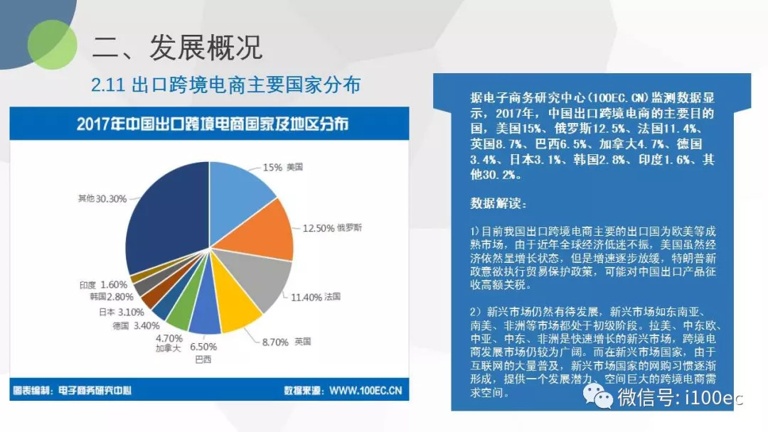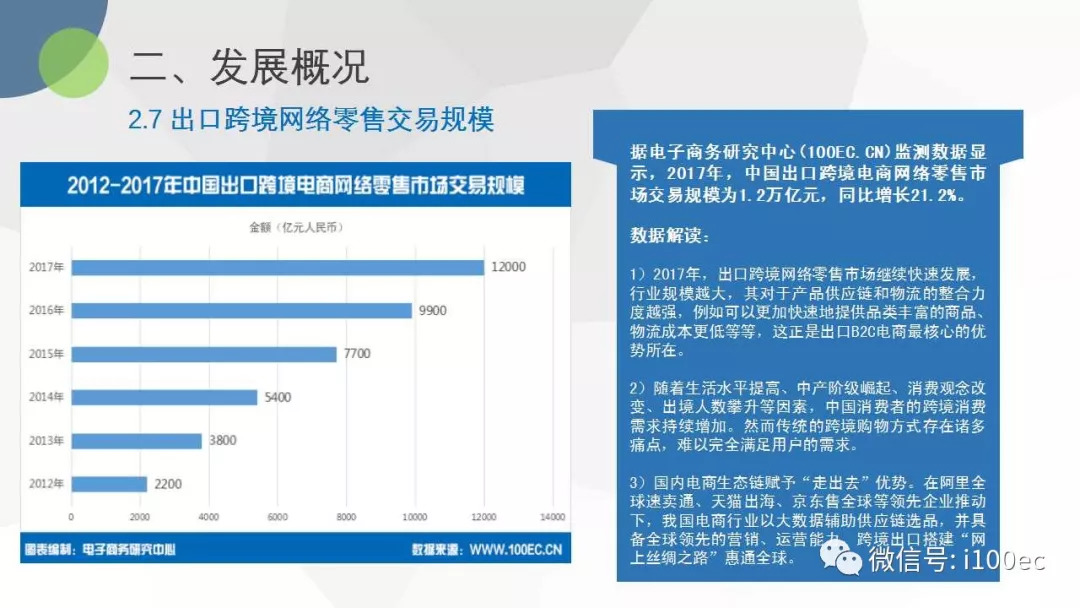 以下为电子商务研究中心自媒体(微信ID:i100EC)为您带来的《2017年度中国出口跨境电商发展报告》简版PPT: