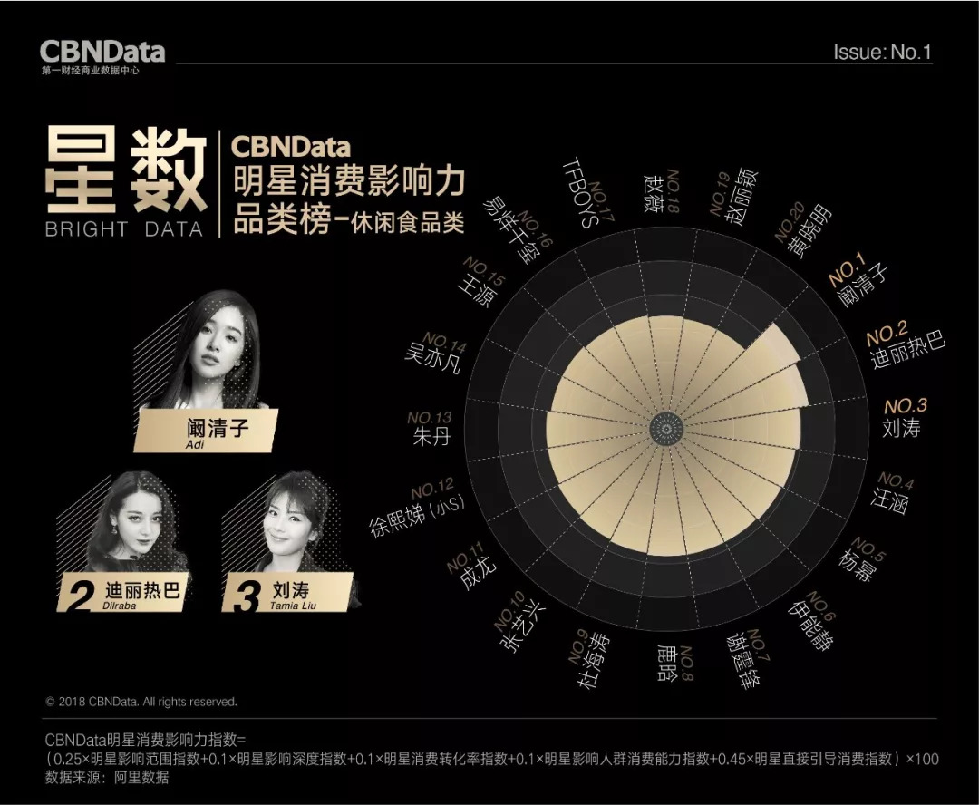 CBNData明星消费影响力2018一季度休闲食品品类榜