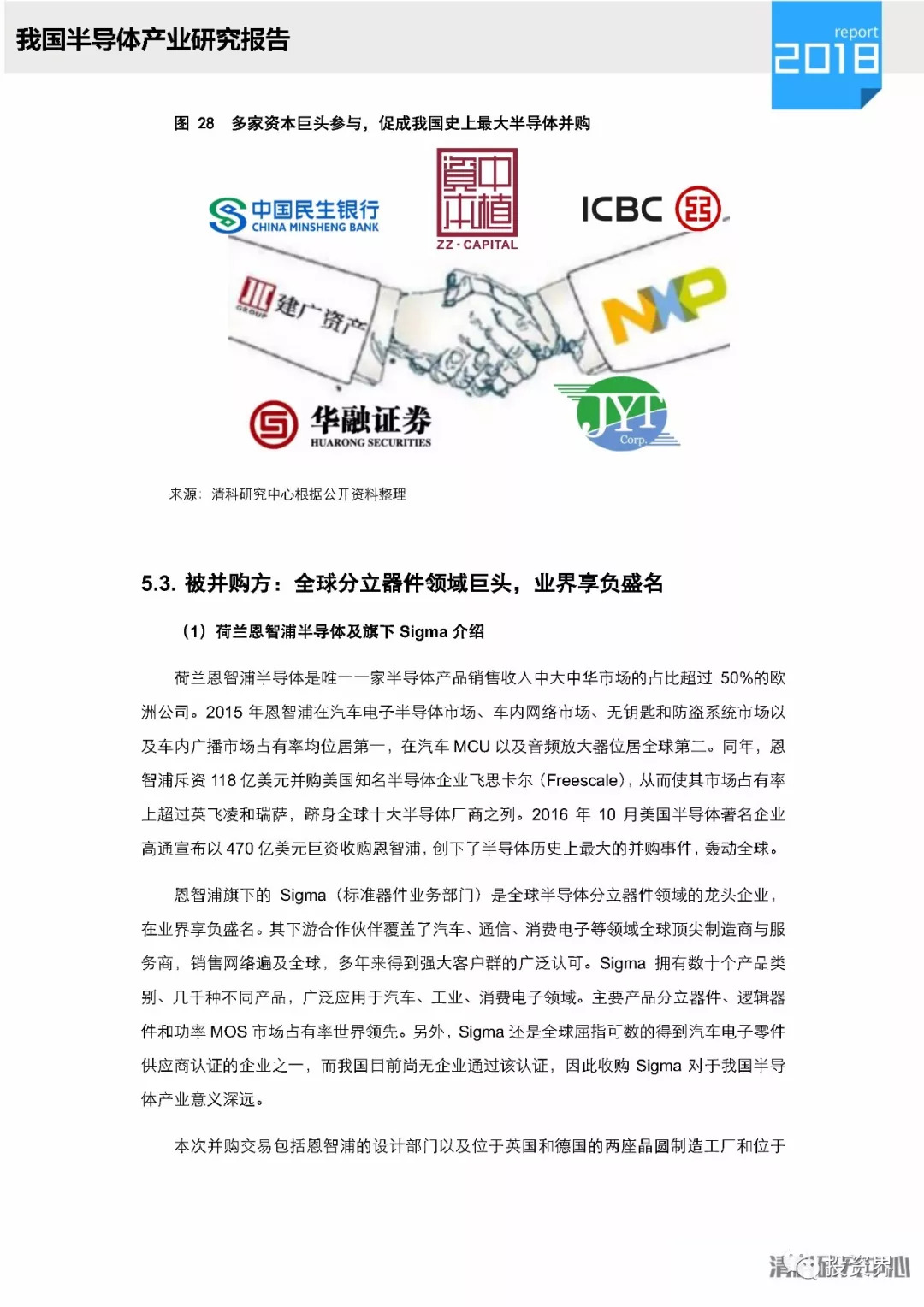 本次并购交易包括恩智浦的设计部门以及位于英国和德国的两座晶圆制造工厂和位于中国、马来西亚、菲律宾的三座封测厂和位于荷兰的恩智浦工业技术设备中心,及标准产品业务的全部相关专利和技术储备,涉及约1.1万名员工。另外,Sigma还是全球屈指可数的得到汽车电子零件供应商认证的企业之一,而我国目前尚无企业通过该认证,因此收购Sigma对于我国半导体产业意义深远。