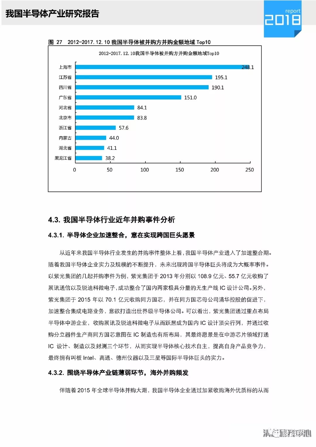 近四年,国家对半导体产业核心的集成电路层面已经进行了深度布局,在政策、资本的促进下加速成长。而分立器件、光电器件及传感器等领域也在不断并购整合。在资金方面,2014年中国成立了国家集成电路产业投资基金来扶持芯片产业链上的相关企业,投资资金一期超过1387亿元。2018年1月,消息指该基金的第二期募资也已经启动,预计规模达到2000亿元。