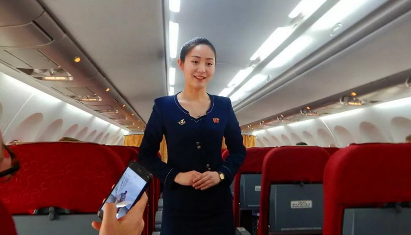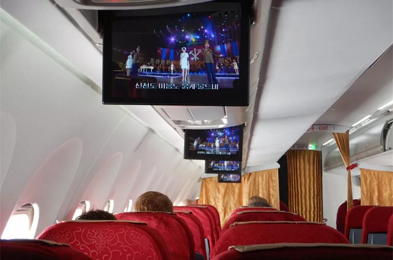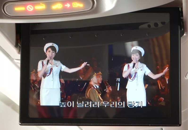 在从北京飞往元山1个多小时的飞行途中,机上小屏幕播放了歌颂朝鲜劳动党和领袖,歌唱美好生活等歌曲。