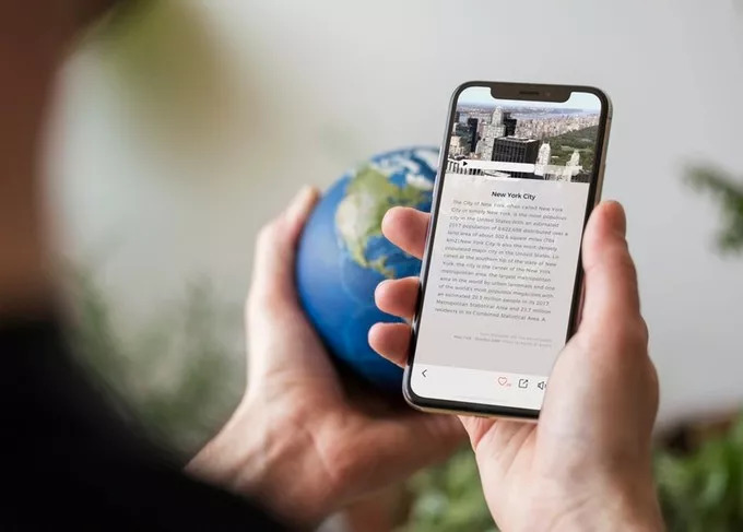 对着一张地图上地理课很无聊?可以试着让你的学生用一下这AR地球仪。EARTH地球仪通过3D打印和手绘制作,玩家通过手机摄像头连接这个地球仪,然后就可以查看有关地球的一切信息。比如非洲草原的生物分布,纽约的天气等等,还能查看数万年来的地貌变迁等地质信息,简直就是一本地球的百科全书。