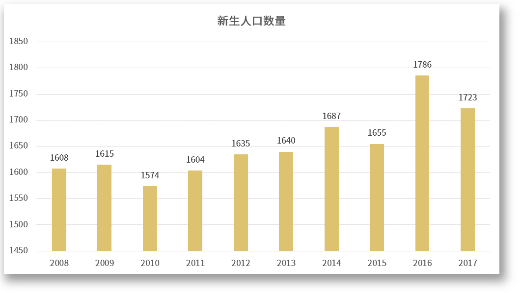 可以看到,2015年开放二胎后,2016年新生人口数量出现了上涨,但仅一年后就再次下滑,2017年,一孩出生人数724万人,比2016年减少249万人,并出现近20年来首次二孩生育数量高于一孩的情况。